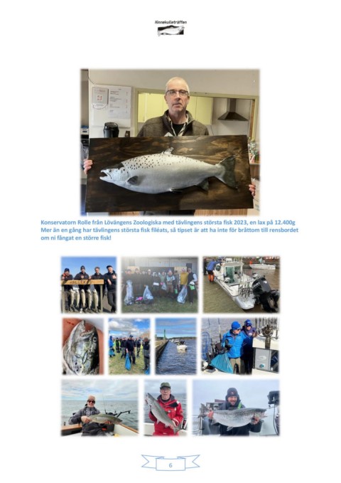 Konservatorn Rolle från Lövängens Zoologiska med tävlingens största fisk 2023, en lax på 12.400g Mer än en gång har tävlingens största fisk filéats, så tipset är att ha inte för bråttom till rensbordet om ni fångat en större fisk! 6
