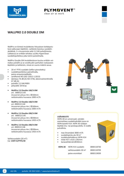toon jatkuvaan käyttöön. Laitteisto koostuu suodatin- HEPA-30 on universaali, seinään