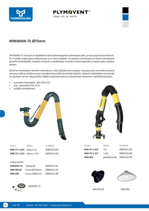 MINIMAN 75 imuvarsi on täydellinen laite kaikentyyppisiin pienempiin pöly- ja kaasunpoistosovelluksiin.