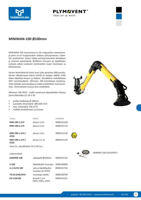Miniman 100 ATEX - mallit soveltuvat käytettäväksi tiloissa