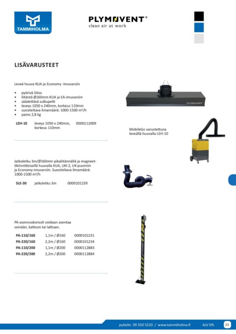 • liitäntä Ø160mm KUA ja EA-imuvarsiin