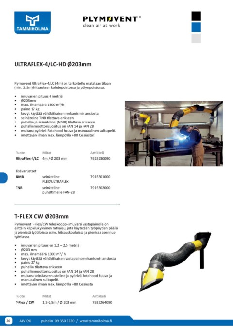 Plymovent UltraFlex-4/LC (4m) on tarkoitettu matalaan tilaan