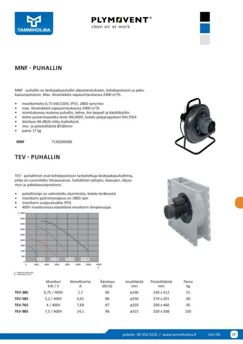 TEV - puhaltimet ovat kohdepoistoon tarkoitettuja keskipakopuhaltimia,