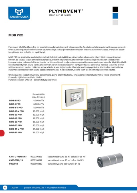 MDB PRO on keskitetty suodatinjärjestelmä yhdistettynä älykkääseen ControlPro-alustaan ja siihen liitettyyn poistopuhal-