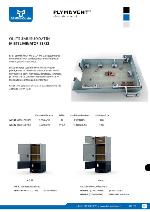 ME-31 (0000100785) ilmamäärälle max. HEPA suodatustehokkuus painehäviö Pa