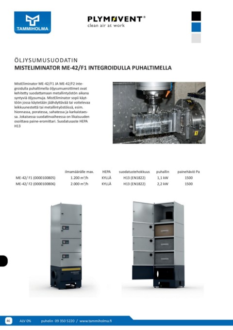 ME-42/ F2 (0000100806) 1.200 m3/h KYLLÄ H13 (EN1822) 1,1 kW 1500