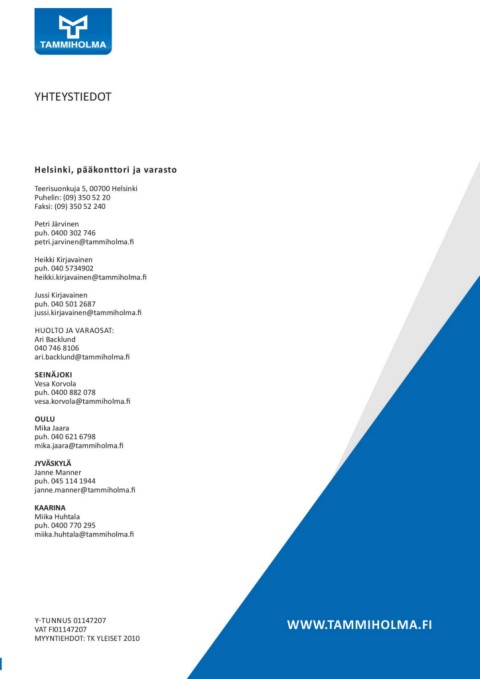 YHTEYSTIEDOT WWW.TAMMIHOLMA.FI
