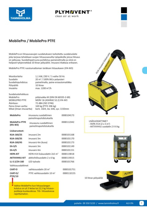 MobilePro on hitsaussavujen suodatukseen tarkoitettu suodatuslaite KUA-imuvarsi lisävaruste