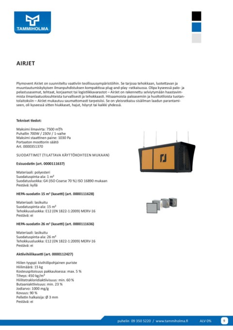 tolaitoksiin – AirJet mukautuu saumattomasti tarpeisiisi. Se on yleisratkaisu sisäilman laadun parantami-