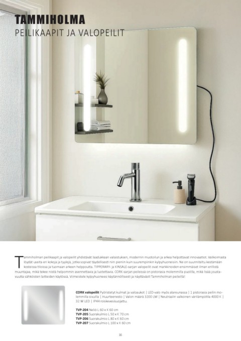 kosteissa tiloissa ja tuomaan arkeen helppoutta. TIPPERARY- ja KINSALE-sarjan valopeilit ovat markkinoiden ensimmäiset ilman erillistä