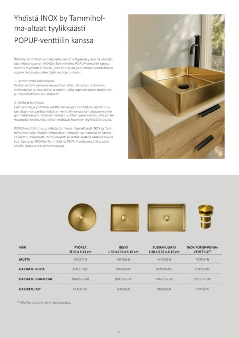 kuin itse allas. INOX by Tammiholma POPUP-pohjaventtiilit sopivat