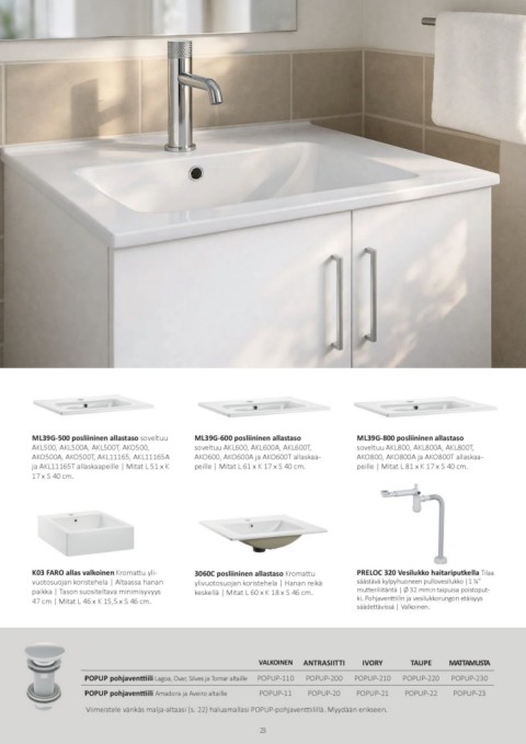 Viimeistele värikäs malja-altaasi (s. 22) haluamallasi POPUP-pohjaventtiilillä. Myydään erikseen.