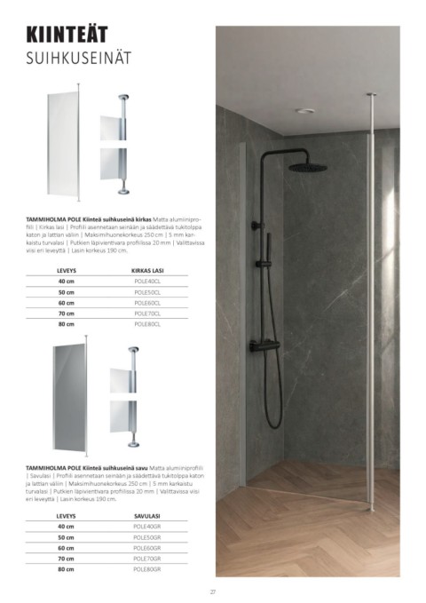 TAMMIHOLMA POLE Kiinteä suihkuseinä savu Matta alumiiniprofiili
