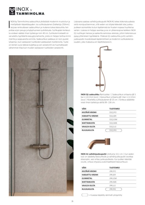 INOX by Tammiholma sadesuihkut yhdistävät modernin muotoilun ja Lisäosana saatava vaihdinjuoksuputki INOX A1 tekee kokonaisuudesta