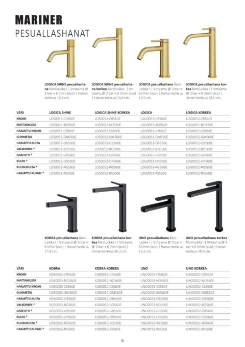 3 bar < 6 l/min (eco) | Hanan taama @ 3 bar < 6 l/min (eco) 6 l/min (eco) | Hanan korkeus @ 3 bar < 6 l/min (eco) |