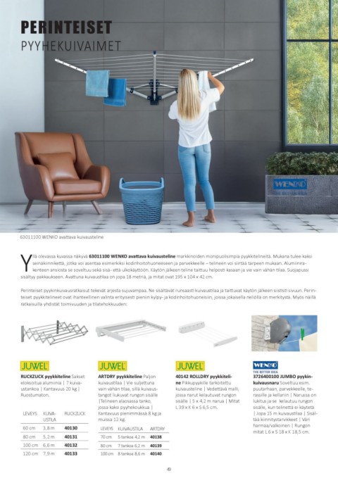 RUCKZUCK pyykkiteline Sakset ARTDRY pyykkiteline Paljon 40142 ROLLDRY pyykkiteli- 3726400100 JUMBO pyykin-