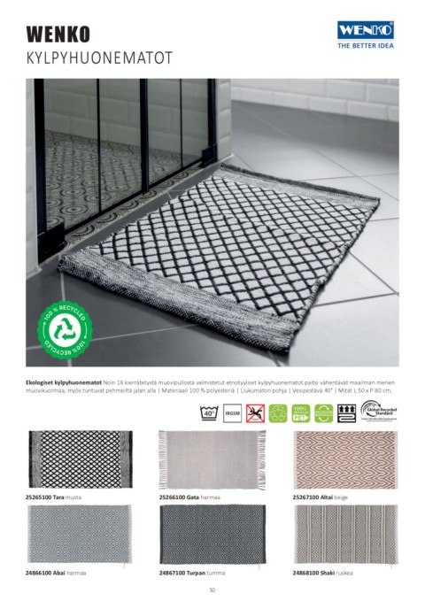 Ekologiset kylpyhuonematot Noin 18 kierrätetystä muovipullosta valmistetut etnotyyliset kylpyhuonematot paitsi vähentävät maailman merien