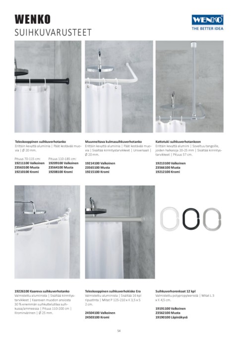 19226100 Kaareva suihkuverhotanko Teleskooppinen suihkuverhokisko Era Suihkuverhorenkaat 12 kpl
