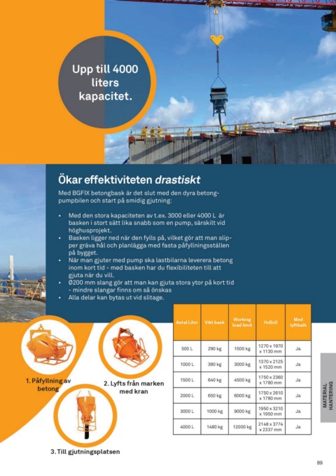 • Ø200 mm slang gör att man kan gjuta stora ytor på kort tid