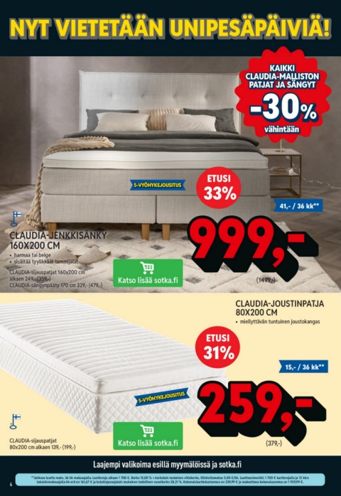 CLAUDIA-sijauspatjat 259,-5-VYÖHYKEJOUSITUS