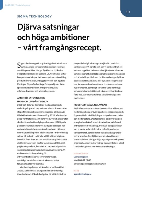 lösningar. Sigma Technology Group erbjuder även nen, ta nya marknadsandelar och etablera oss inom