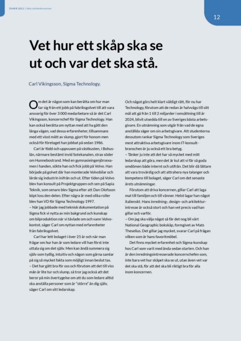 Vikingsson, koncernchef för Sigma Technology. Han 2024, blivit utsedda till en av Sveriges bästa arbets-