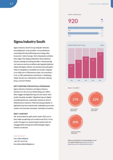 Sigma Industry South ANTAL ANSTÄLLDA +16%