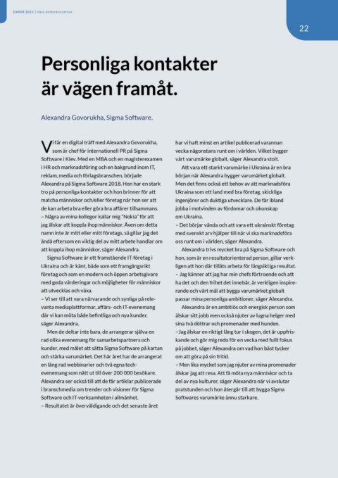 Alexandra på Sigma Software 2018. Hon har en stark början när Alexandra bygger varumärket globalt.