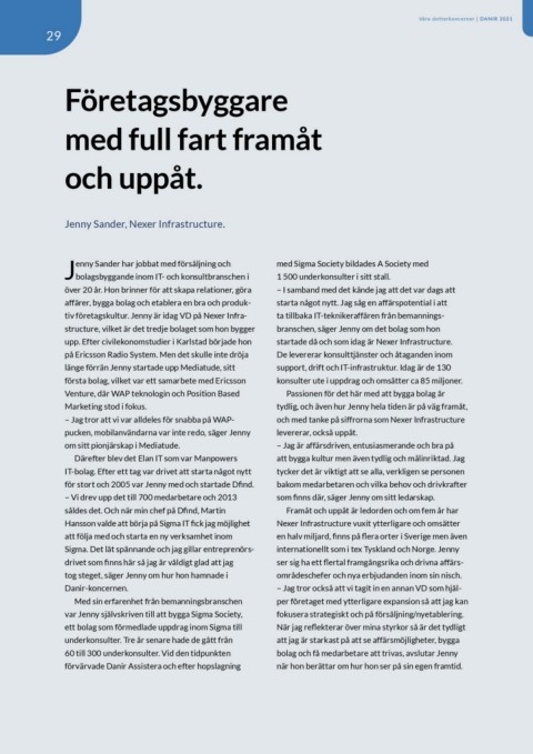 tiv företagskultur. Jenny är idag VD på Nexer Infra- ta tillbaka IT-teknikeraffären från bemannings-