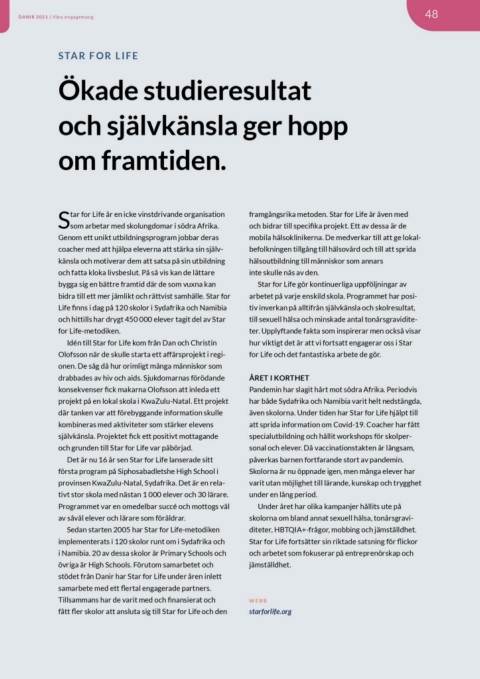 bidra till ett mer jämlikt och rättvist samhälle. Star for Star for Life gör kontinuerliga uppföljningar av