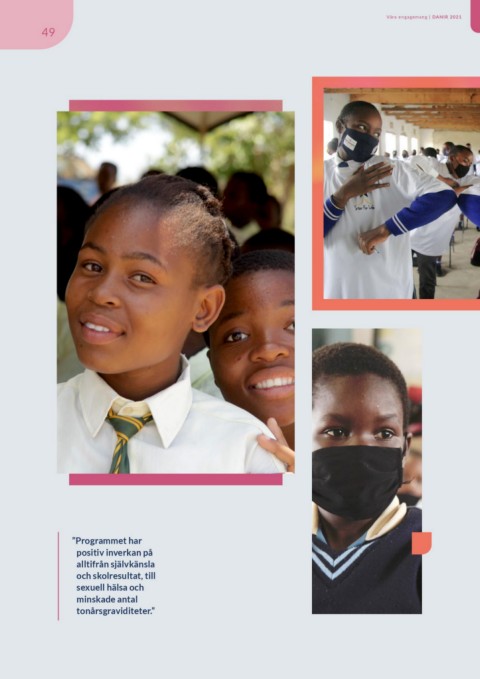 Våra engagemang | DANIR 2021 49 ”Programmet har positiv inverkan på alltifrån självkänsla och skolresultat, till sexuell hälsa och minskade antal tonårsgraviditeter.”