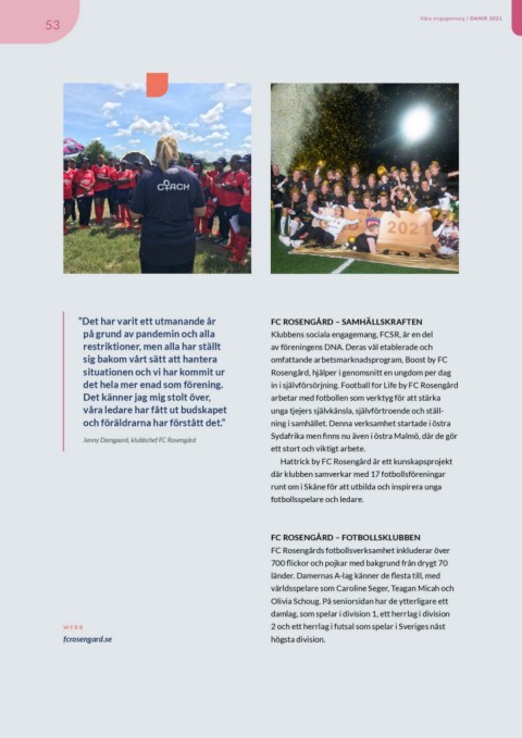 det hela mer enad som förening. in i självförsörjning. Football for Life by FC Rosengård