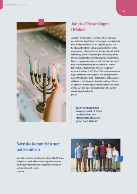 intressen i samhället och står upp mot antisemitism.