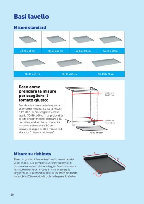 larghezza (A) x profondità (B) e lo spessore del fondo