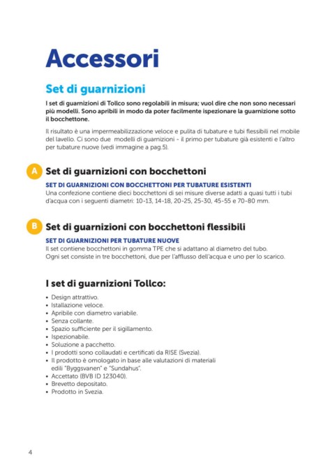 I set di guarnizioni di Tollco sono regolabili in misura; vuol dire che non sono necessari