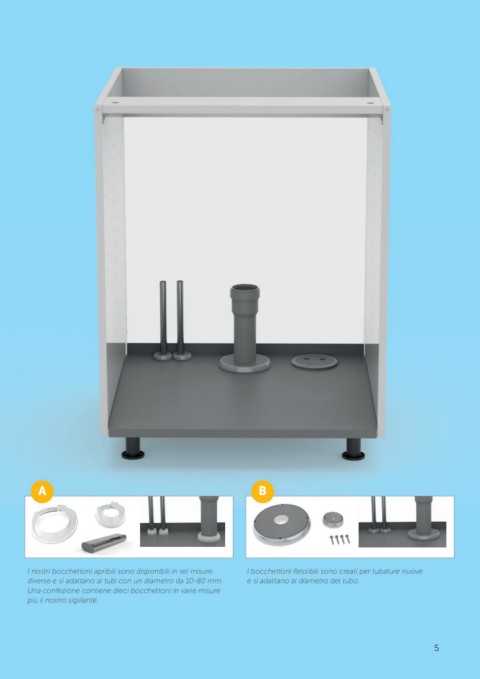 I nostri bocchettoni apribili sono disponibili in sei misure I bocchettoni flessibili sono creati per tubature nuove