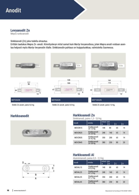 98 wwww.mepratuote.fi Sinkkianodi, paino 1,3 - 5,8 kg