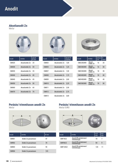 CMX45 Akselisinkki Zn 30 CMX09 Akselisinkki Zn 1,25 CMC35EURO Akseli-