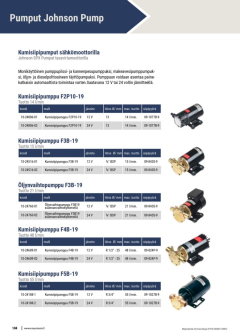 10-24886-01 Kumisiipipumppu F2P10-19 12 V 13 14 l/min. 09-1077B-9