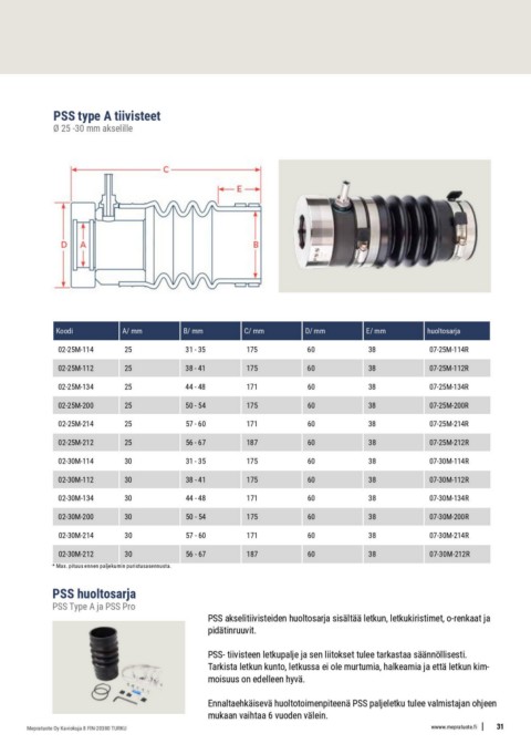PSS- tiivisteen letkupalje ja sen liitokset tulee tarkastaa säännöllisesti.