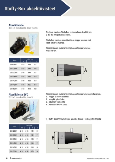 SB1525000 Ø 25 Ø 39 111 Stuffy Box kuminen akselitiiviste on helppo asentaa eikä