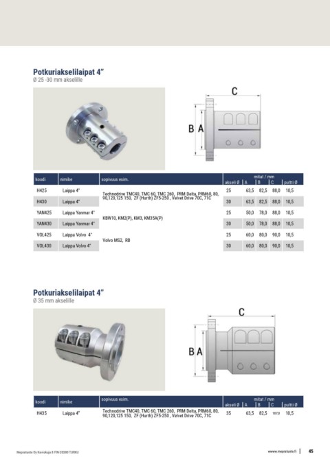 H435 Laippa 4” Technodrive TMC40, TMC 60, TMC 260, PRM Delta, PRM60, 80, akseli Ø A B C