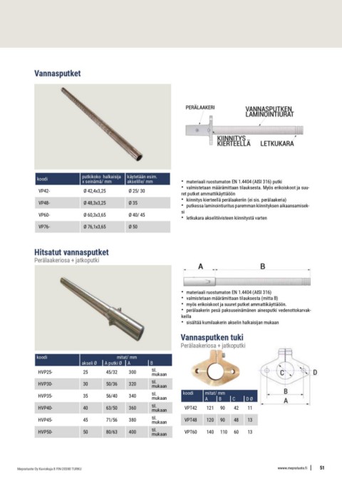 koodi putkikoko halkaisija käytetään esim. • materiaali ruostumaton EN 1.4404 (AISI 316) putki