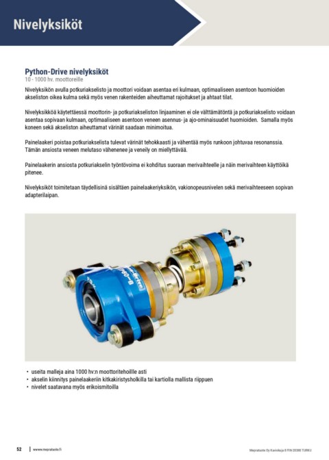 Nivelyksiköt toimitetaan täydellisinä sisältäen painelaakeriyksikön, vakionopeusnivelen sekä merivaihteeseen sopivan