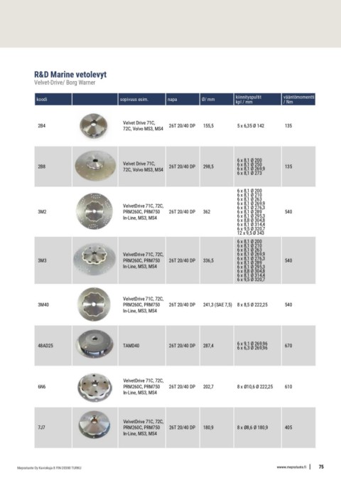 koodi sopivuus esim. napa Ø/ mm kiinnityspultit vääntömomentti