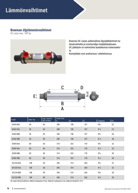 Bowman DC sarjan putkimalliset öljynjäähdyttimet hy-