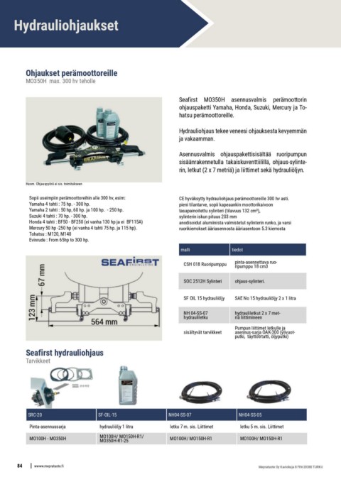 Mercury 50 hp -250 hp (ei vanha 4 tahti 75 hp. ja 115 hp). CE hyväksytty hydrauliohjaus perämoottoreille 300 hv asti.