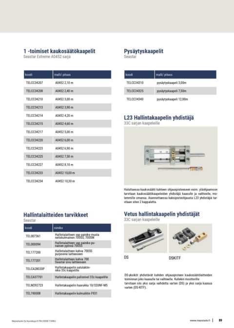 TELCC34207 A0452 2,10 m TELCC34310 pysäytyskaapeli 3,00m