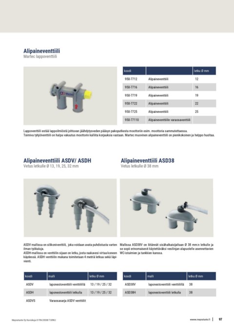 Alipaineventtiili ASDV/ ASDH Alipaineventtiili ASD38