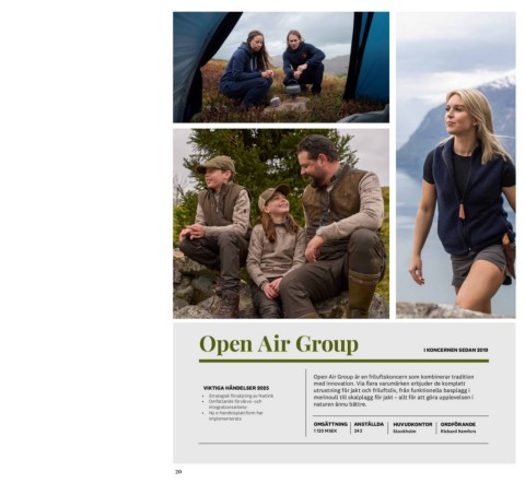 VIKTIGA HÄNDELSER 2025 Open Air Group är en friluftskoncern som kombinerar tradition
